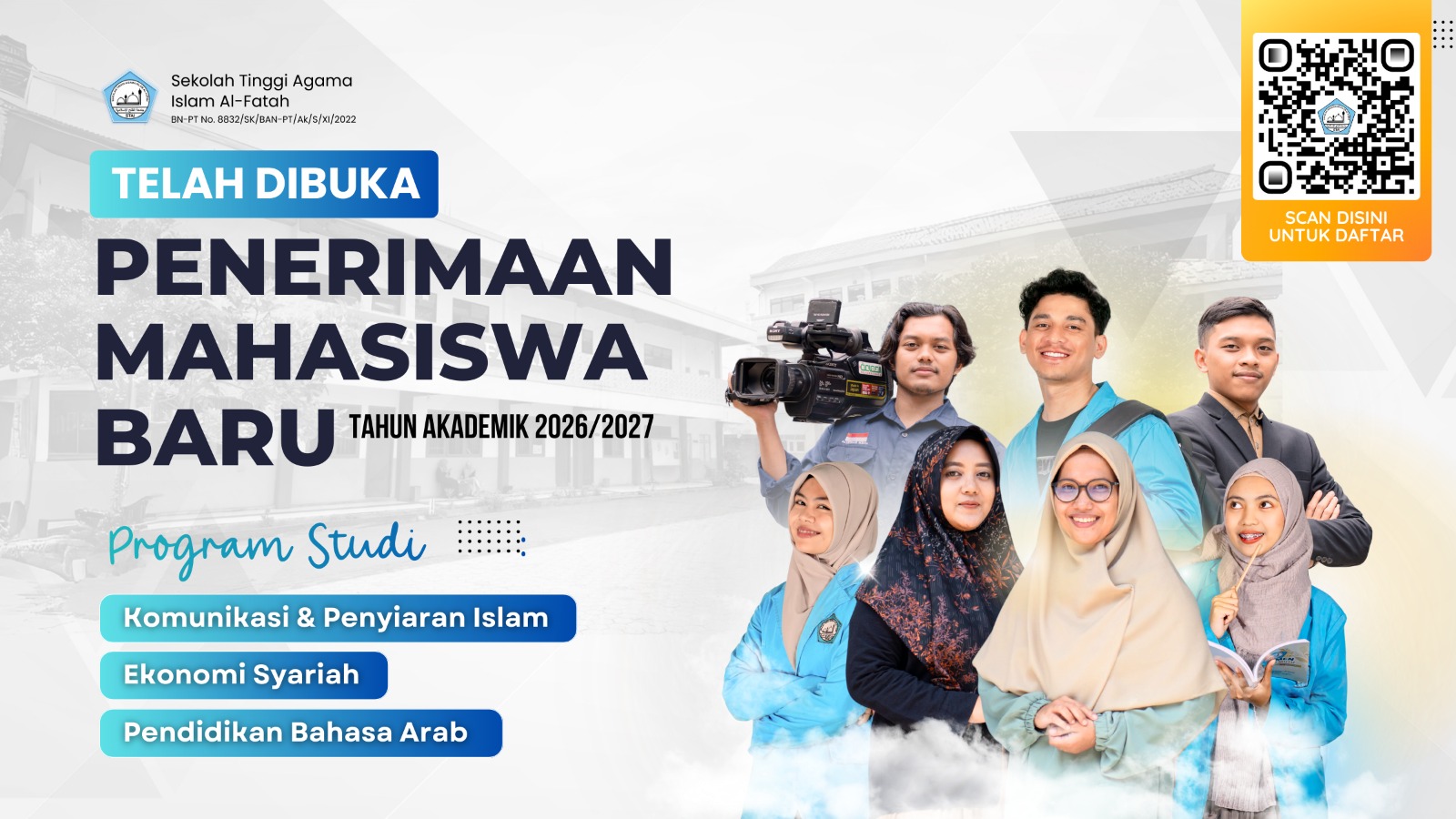 Bogor – STAI Al-Fatah secara resmi membuka Penerimaan Mahasiswa Baru (PMB) Tahun Akademik 2026/2027. Pendaftaran ini terbuka bagi lulusan SMA/SMK/MA atau sederajat yang ingin melanjutkan pendidikan tinggi di bidang keislaman yang unggul, profesional, dan berdaya saing.